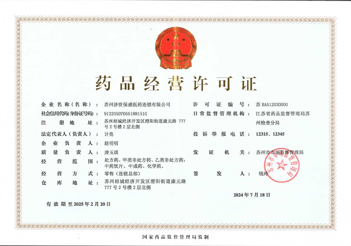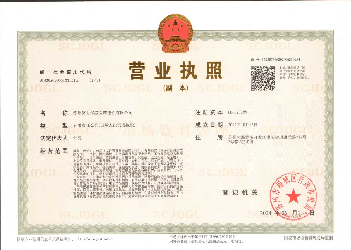 苏州济世保盛医药连锁有限公司成立于2012年,注册资本600万元,是以药品零售为 主的公司。“济世保盛”商标已于2012年7月在国家工商总局注册成功。